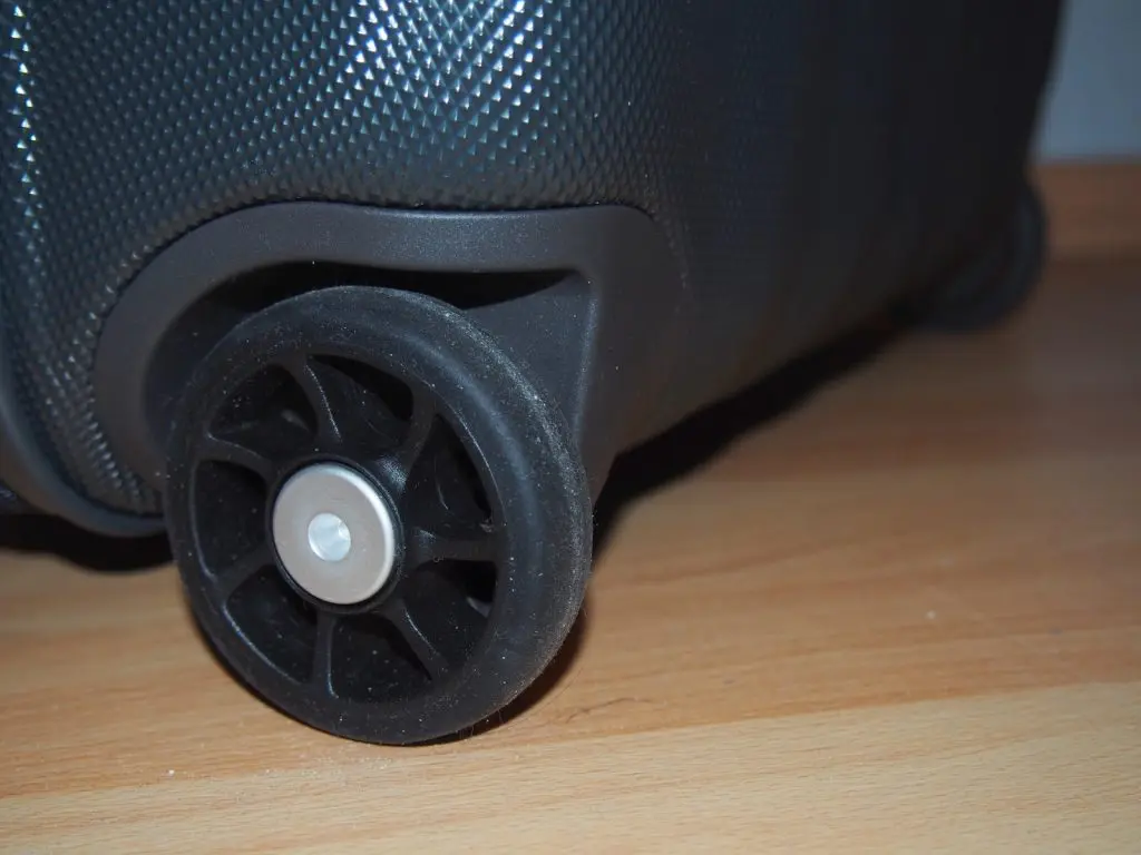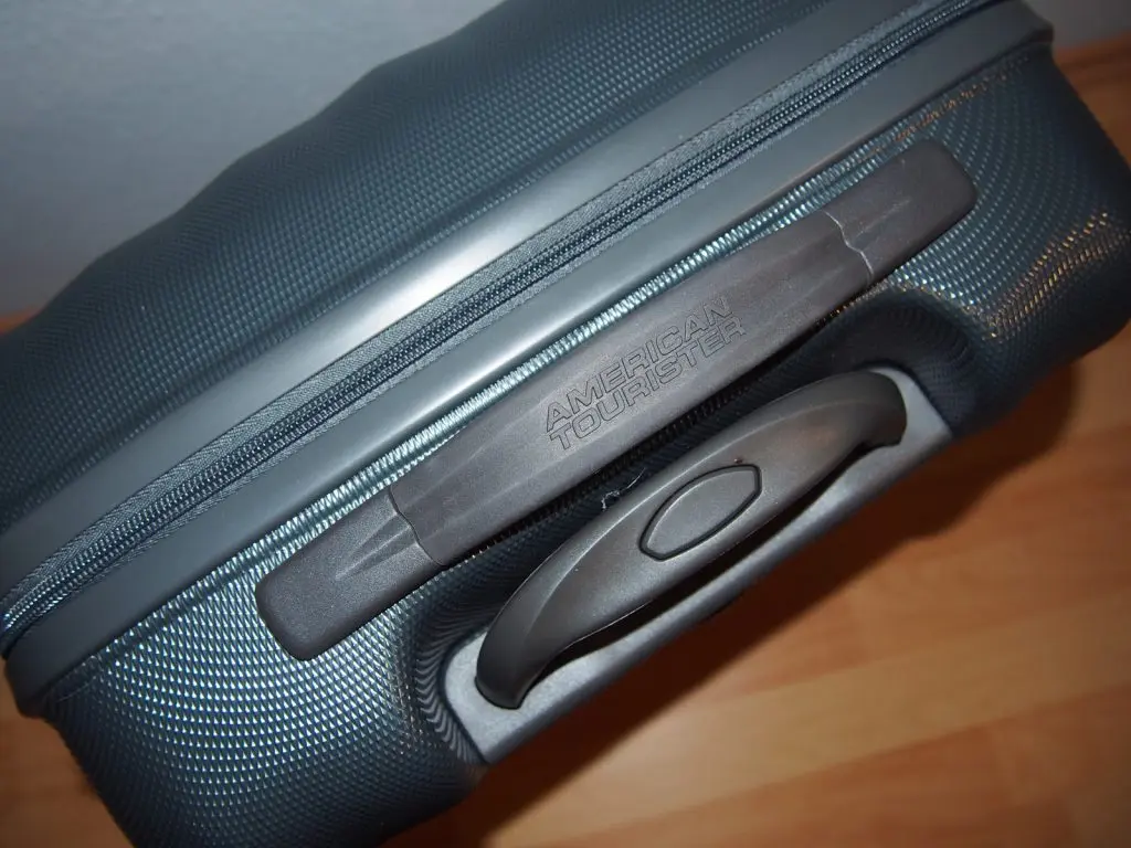 Made out of 100% Polycarbonate the American Tourister PRISMO II UPRIGHT S STRICT is a hard-side suitcase. The diamond structure outside helps not just to protect against scratches, but it’s also very helpful when it’s raining or wet. The Zipper can be locked with a fixed TSA Lock, that fits all the regulations for Travels in the USA. The push-button wheel handle seems to be quite stable, let’s see what I can tell about it in one Year.
