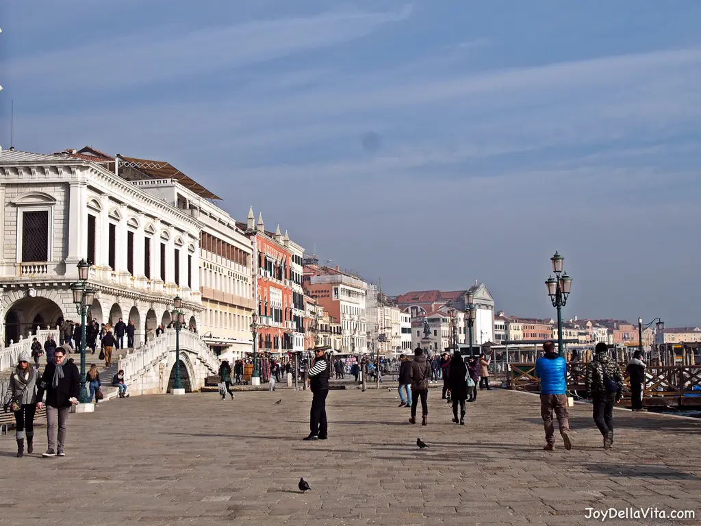 Gondolas and waterborne stops at Saint Mark’s Square in Venice and sometimes even big Cruise Ships, how surreal it sounds and indeed looks! Along the Square are some of the most beautiful buildings in Venice, such as the Doge’s Palace. The Venetian Republic was once ruled by this enchanting example of a floral Gothic style Building, making it the highest expression of Venetian art. Right next to it, and close to my Lunch spot Rossopomodoro in Venice, there is the Saint Mark’s Basilica. It’s a great example of Byzantine Venetian architecture. It was the Doge’s Chapel and also the mausoleum for Saint Mark, the patron saint, whose life is narrated in the golden mosaics on the walls. Not to miss is the Clocktower that was built in 1810 by architect Giuseppe Soli. the clocktower is at the start of the Merceria, the road that leads from Saint Mark’s Square to the Campo di San Bartolomeo. At any time you can find some thousands of pigeons in the square. Either walking around or flying closely over people’s heads. There are also many Souvenir Shops selling the usual stuff, from ‘Venetian Masks‘ to Postcards and Selfie Sticks. Saint Mark’s Square in Venice is also very expensive if you visit a Restaurant or Café there, make sure to pay more than 15 € for a simple Espresso there. If you have scored a nice Place outside at least your View will be worth it. A visit to Venice will be absolutely worth it.