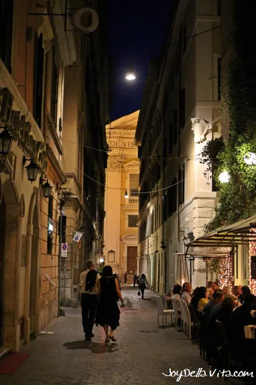 From the Spanish steps/Piazza di Spagna, it would have been just another short walk over to Piazza del Popolo but my time was running and I had to head back to the Hotel. Luckily in the evening I again found some time to walk over to the famous Steps in Rome. Then the area was definitely less crowded, and in the side streets, people were enjoying their Dinner outside. For sure I had to end this second visit to the Spanish Steps in Rome with a Gelato, before leaving early the other Day. 24 hours in Rome are like nothing…